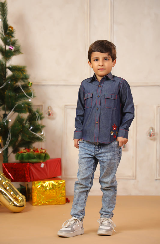 Girl Rani Embroidered Skirt Top Set -Navy Blue