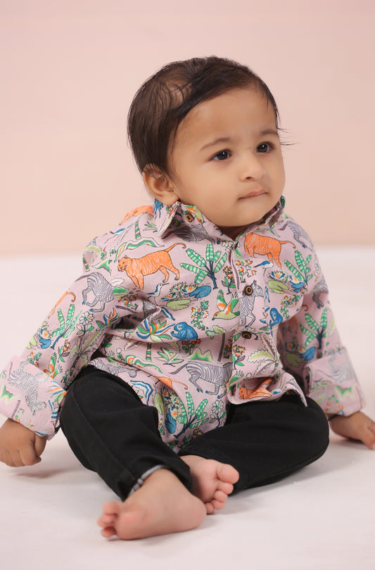 Boy Appliqued Kurta Pyjama Set- Baby Pink