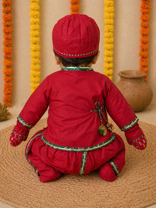 Baby Red Rai Bhandej Jamna Set -Red