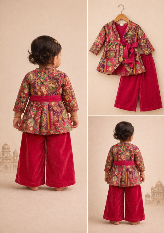 Girl Princess Jacket style Top And Pant Set-Magenta