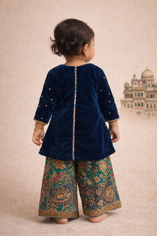 Girl Velvet Sharara Set-Black