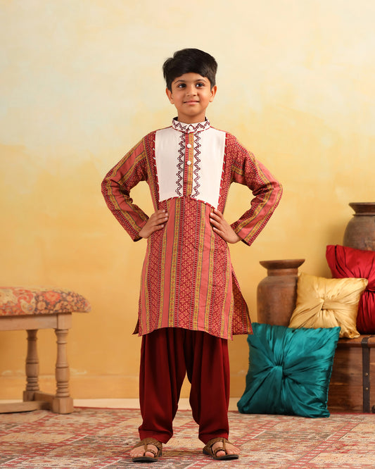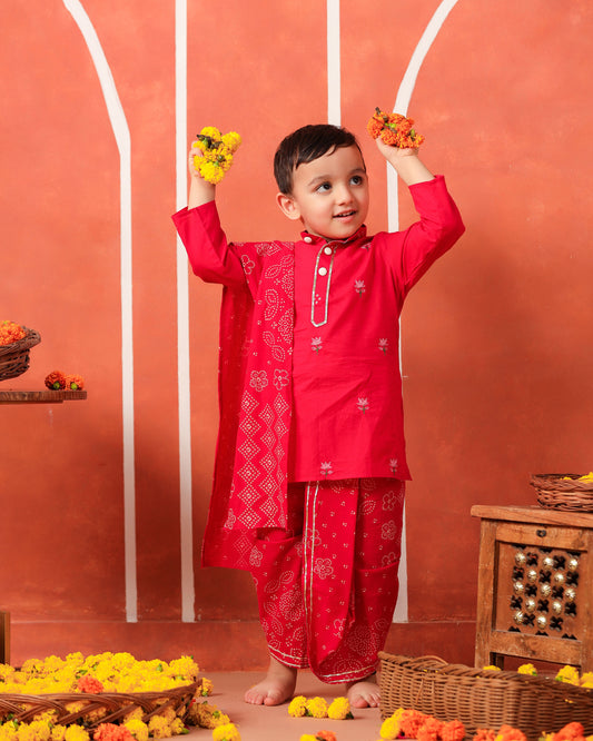 Boy Dhola Maru Dhoti Kurta Set-Maroon