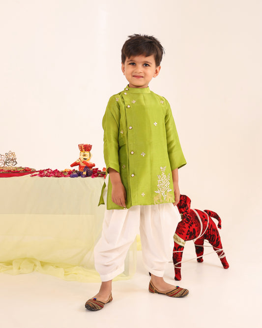Boy Stripe Zari Embroidered Kurta Set - Minty Green