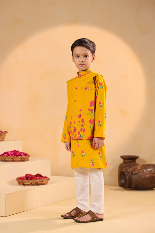 Boy Genda Phool Bundy Set - Mustard Yellow