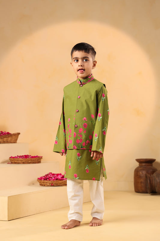 Girl Genda Phool Print Kurta Set - Mehandi green