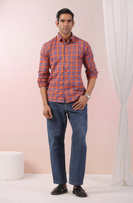 Bright Orange Checks Father Shirt