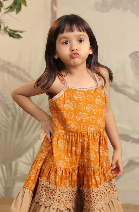 Girl Dhola Maru Print Sharara Set - Peachish Pink