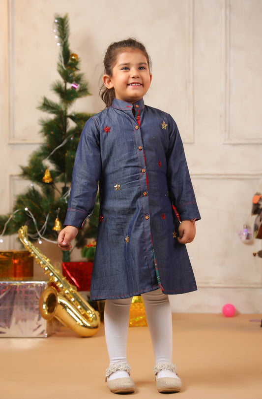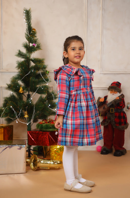 Girl Dhola Maru Floral Jaal Suit Set-Maroon and Pink