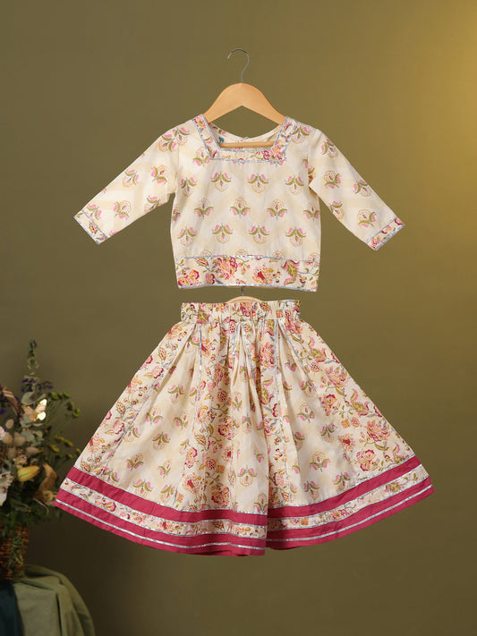 Girl Floral Skirt Set - Beige