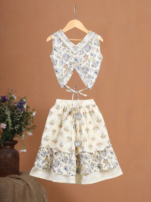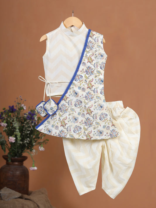 Girl Top Dhoti Set - Beige