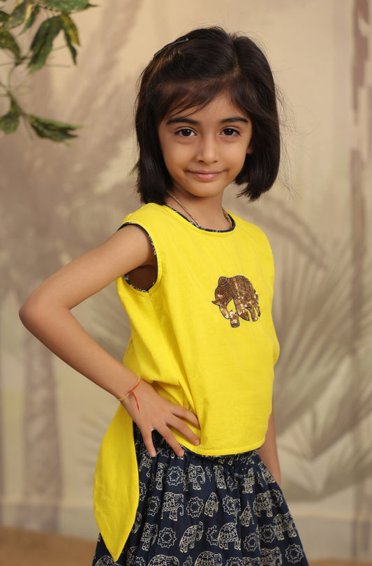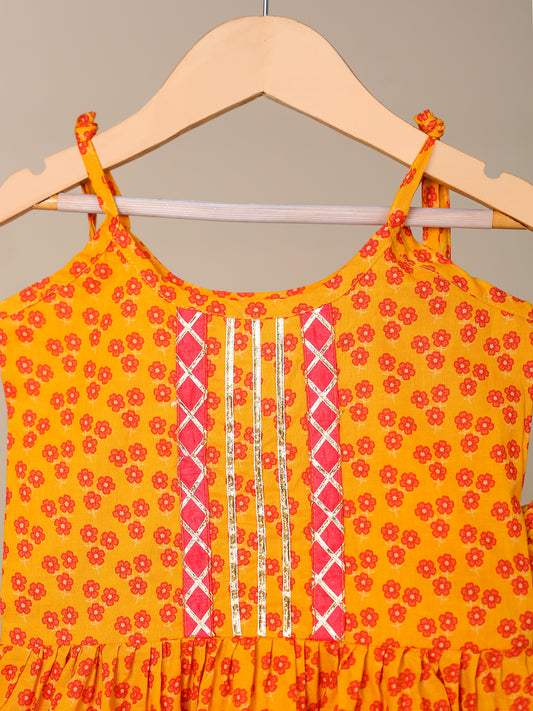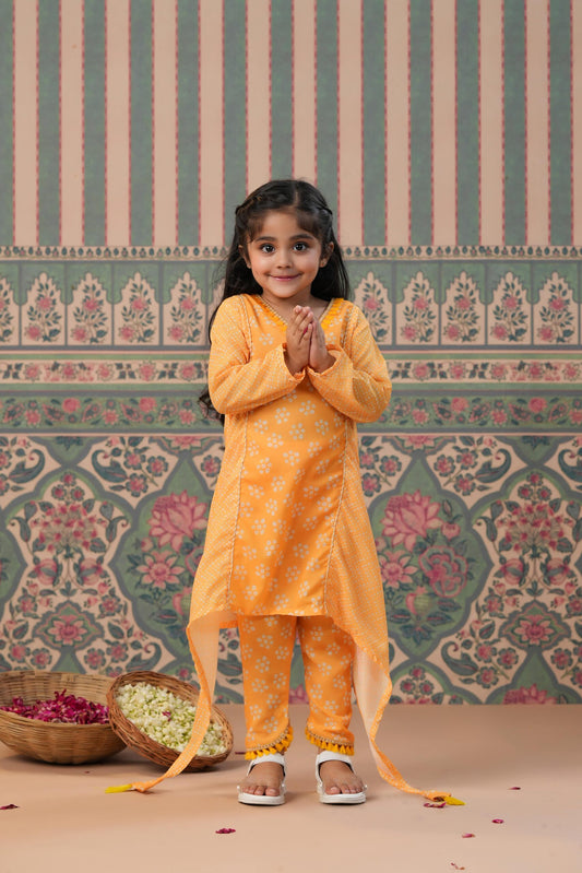 Girl 3pc Kurta Dhoti Style Pant Set-Mustard Yellow