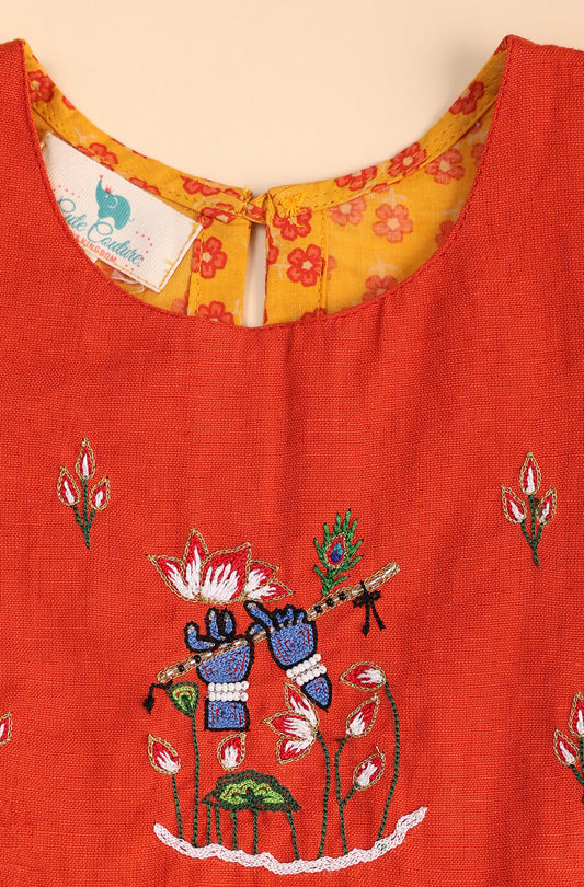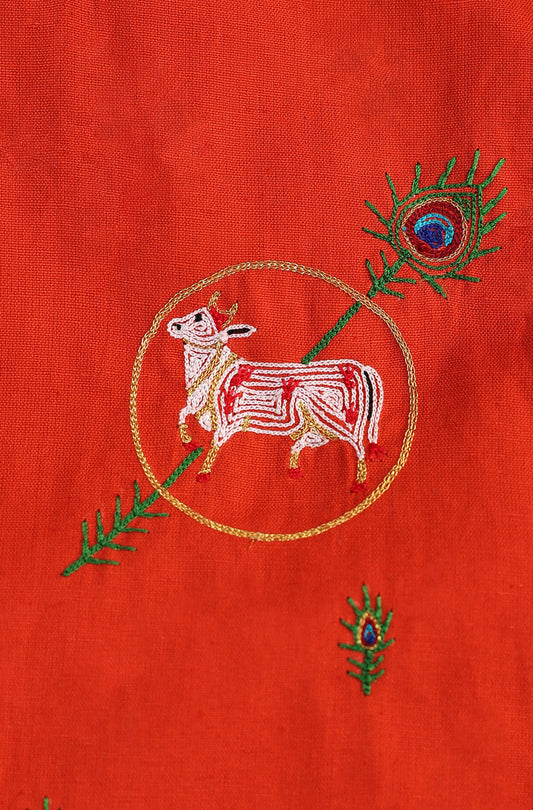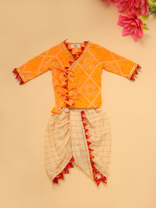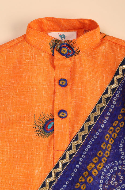 Boy Nandi Cow Dhoti Kurta Set - Orange