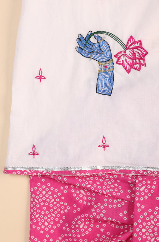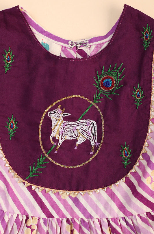 Girls Nandi Cow Kurta Dhoti Set-Purple