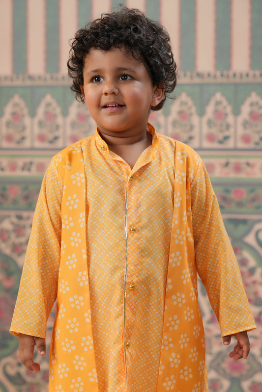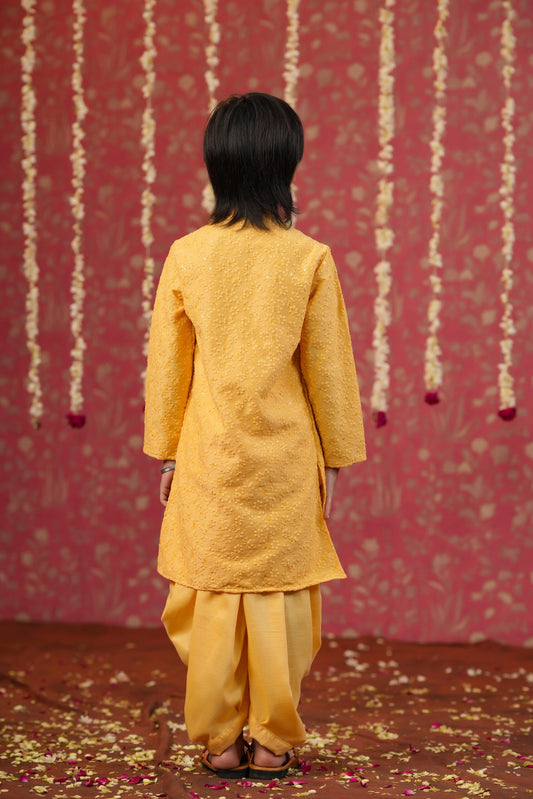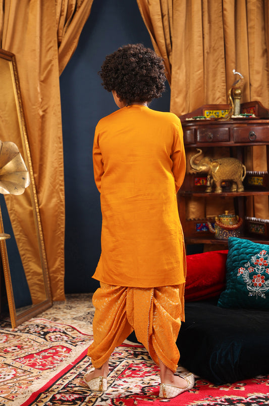 Boy Kurta And Dhoti Set-Mustard Yellow