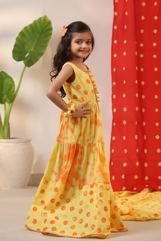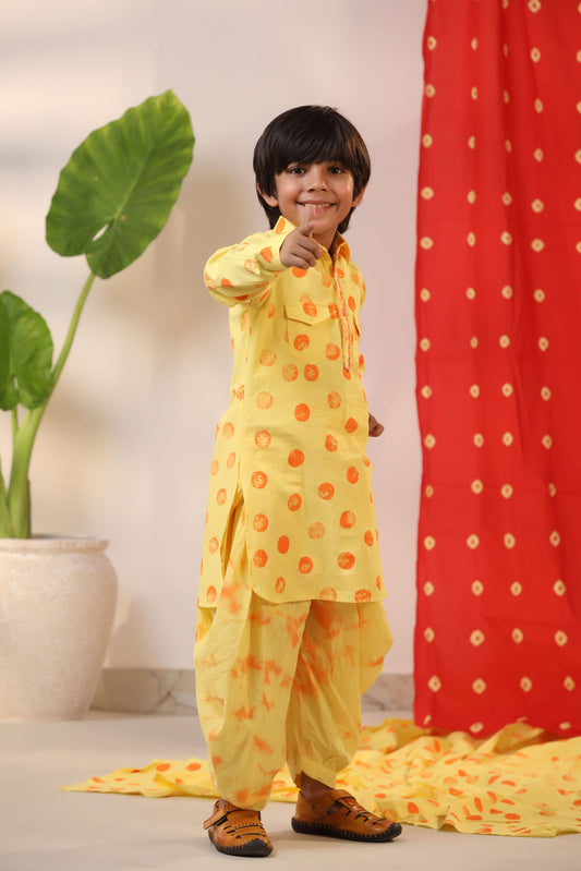 Boy Shibori Print Dhoti Kurta Set-Yellow