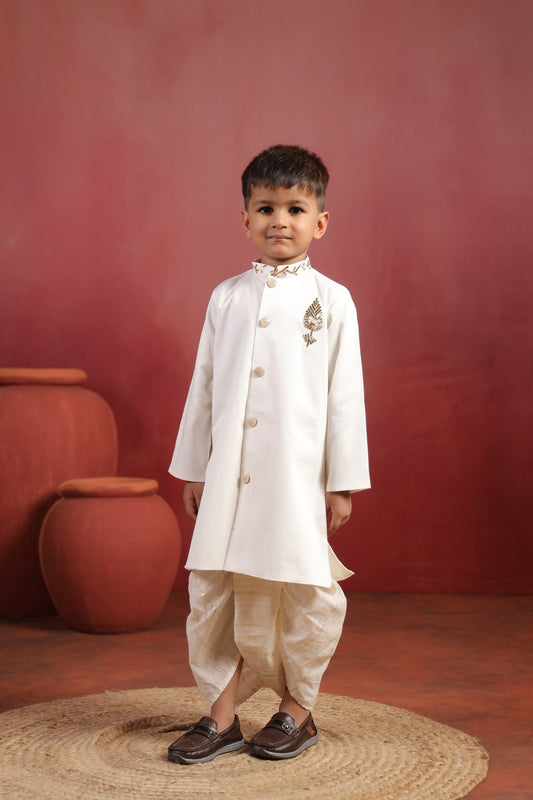 Boy Rajwada Dhoti Sherwani Kurta Set - White