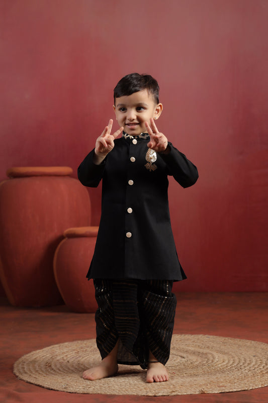 Boy Rajwada Dhoti Sherwani Kurta Set - Black