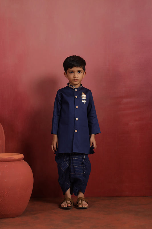 Boy Rajwada Dhoti Sherwani Kurta Set - Navy blue