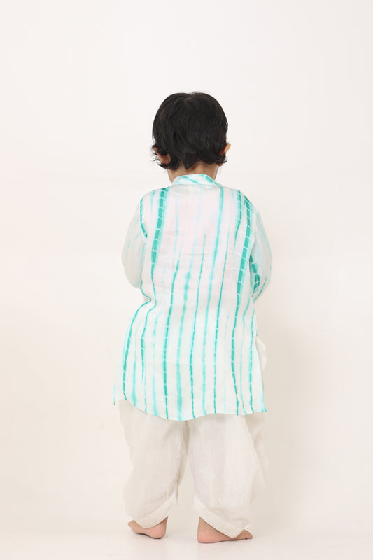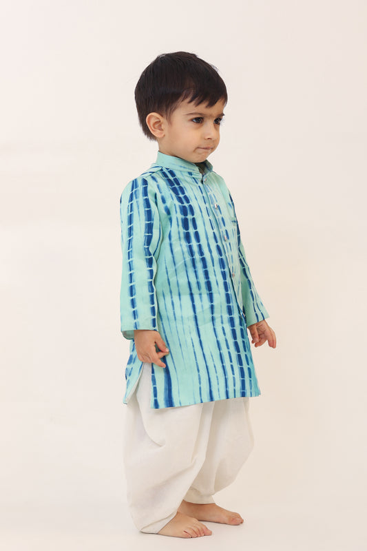 Boy Stripe Zari Embroidered Kurta Set - Teal Blue