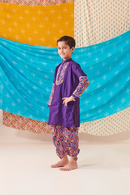 Boy Patola print Kurta Balloon Pants Set - Blue