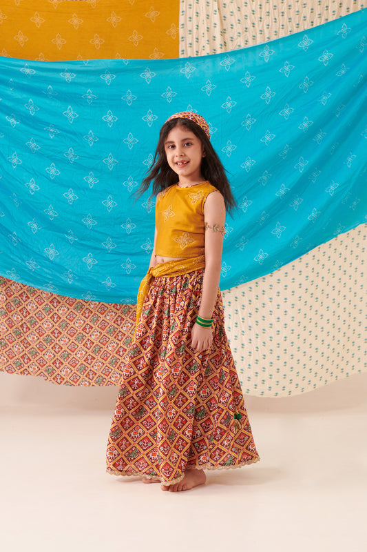 Boy Patola Print 3 Pc Bundi Set - Turquoise