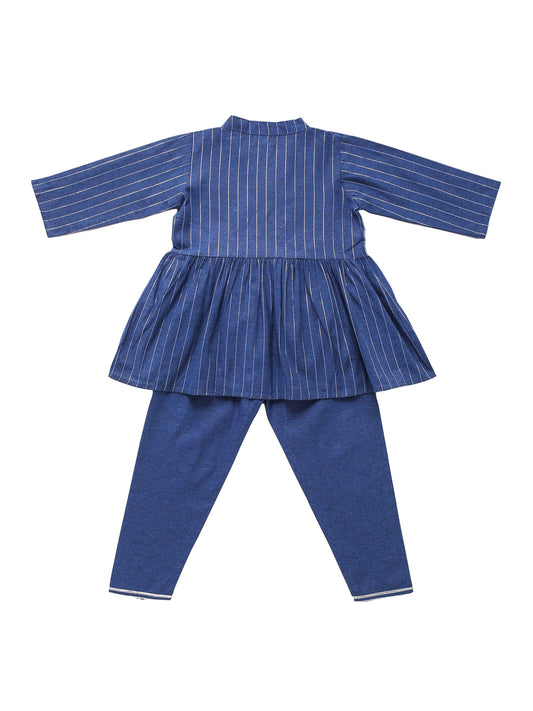Girl Gold Print Kurta Pallazo Set - Blue
