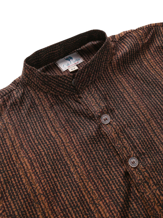 Boy Muslin Print Kurta Jacket Set - Brown