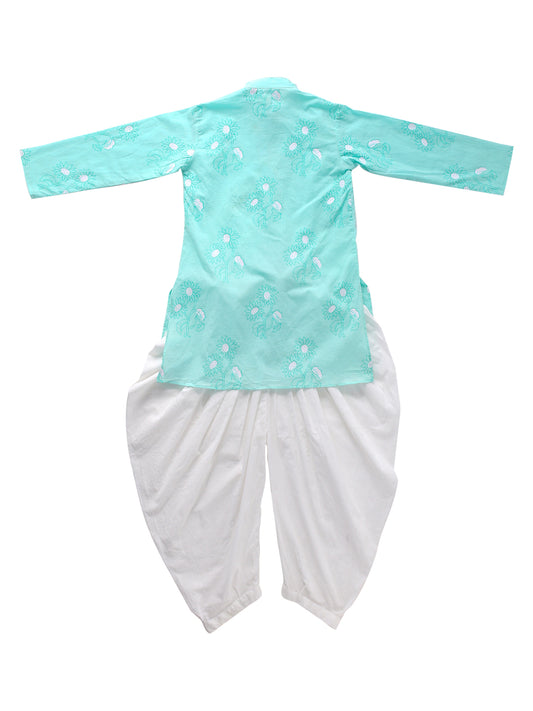 Boy Printed Sherwani Style Kurta Set Green