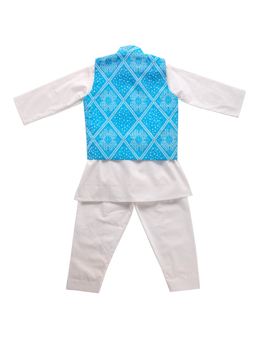 Boy Bandhani 3 Pc Jacket Set - Turquoise