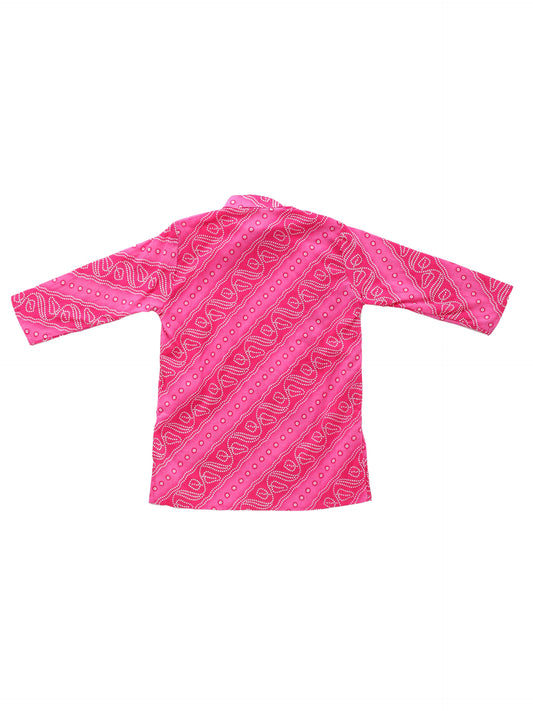 Boy Bandhani Print Kurta Set-Pink