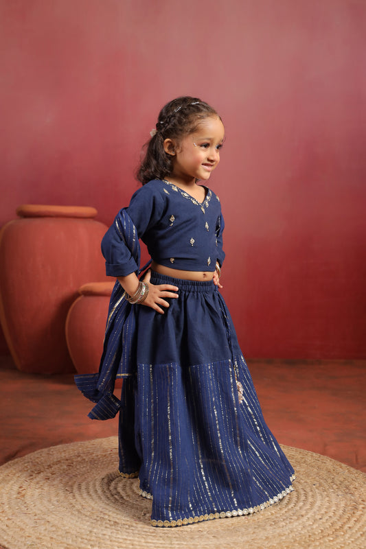 Girl Rani Embroidered Skirt Top Set -Navy Blue