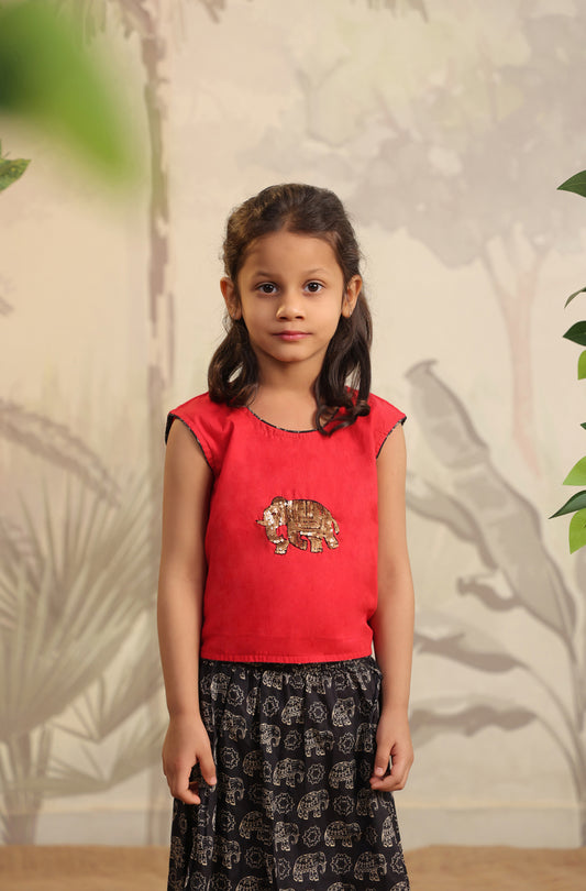 Girl Queen Embroidered Skirt Top Set - Magenta