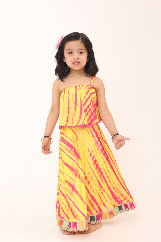 Girl Tie and Dye Skirt Set-Mustard Rani