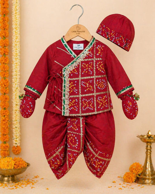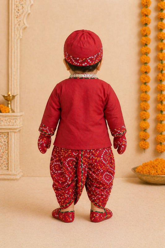 Baby Ghatchola Bhandej Jamna Set -Red