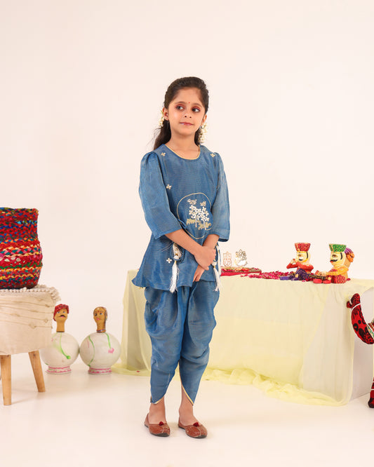 Radha Rani Peplum Kurta Dhoti Set- Teal Blue