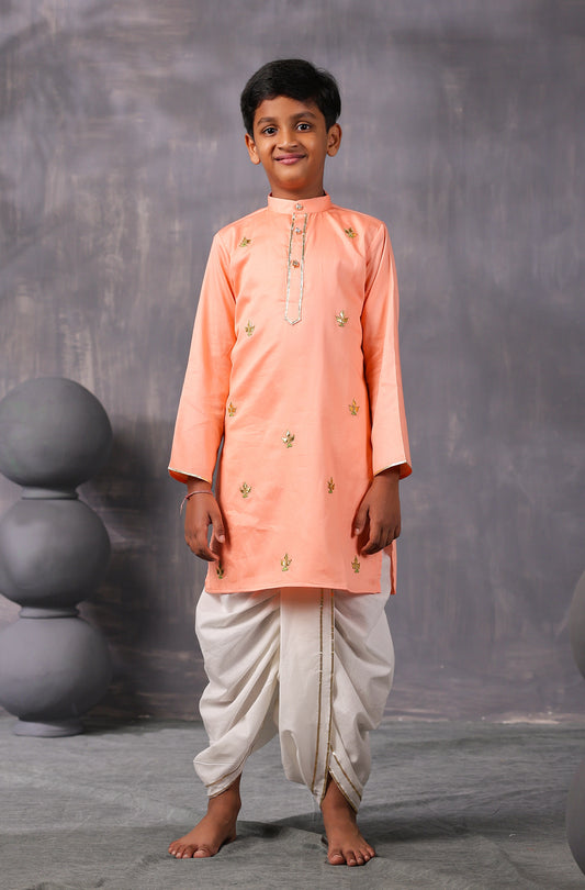 Boy Handpainted Angarkha Dhoti Set-Pink