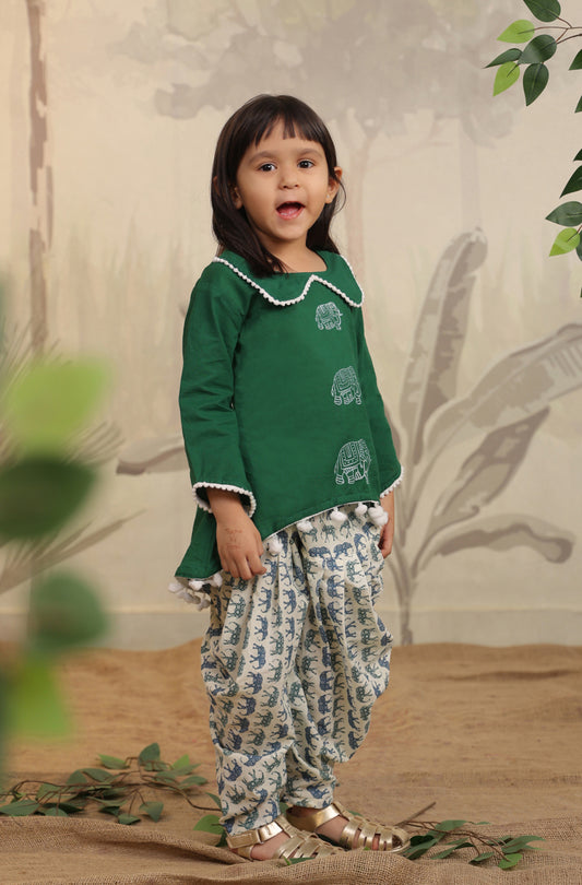 Girl Striped Fancy Zari Embroidered Top with Cowl Dhoti Pants- Minty Green