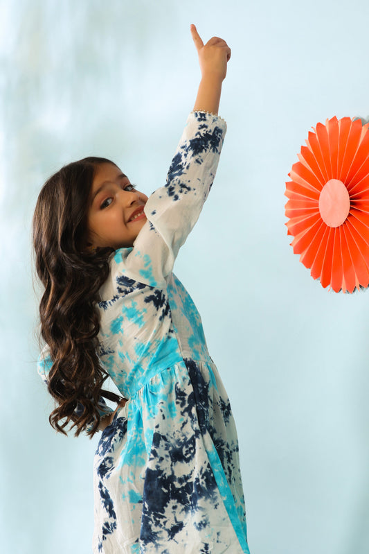 Girl Tie and Dye Top With Tulip Pants Set - Blue