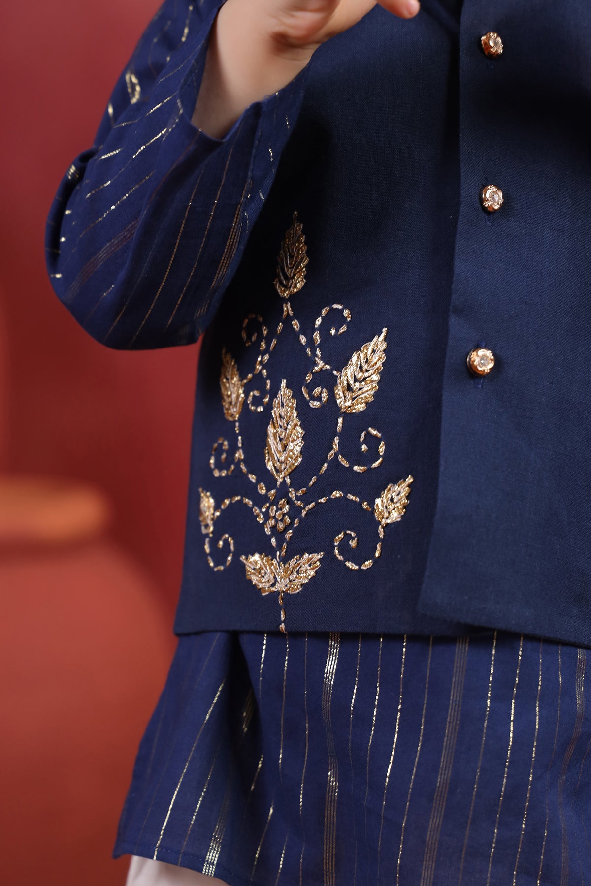 Boy 3 Pc Royal Zardozi Bundy Set - Navy Blue
