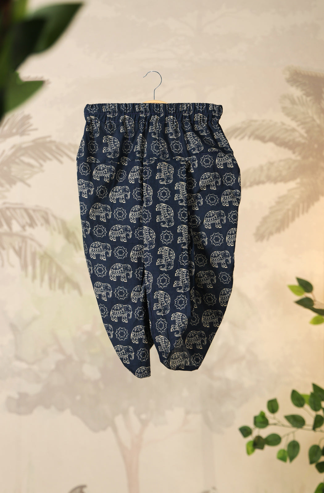 Let your baby steal the show with fusion elegance . This set features a stylish indowestern angarkha kurta of small cute hand embroidered elephant motifs with smart comfy printed dhoti in contrast colour. This set is perfect for all small gatherings and upcoming light functions.