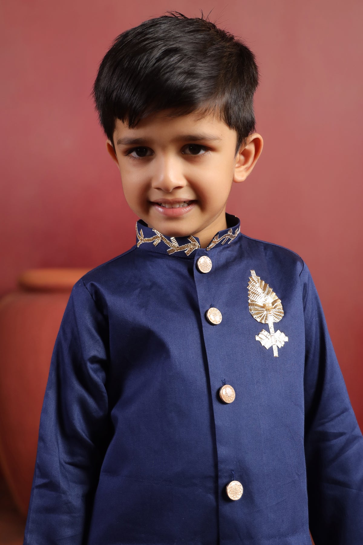 Boy Rajwada Dhoti Sherwani Kurta Set - Navy blue