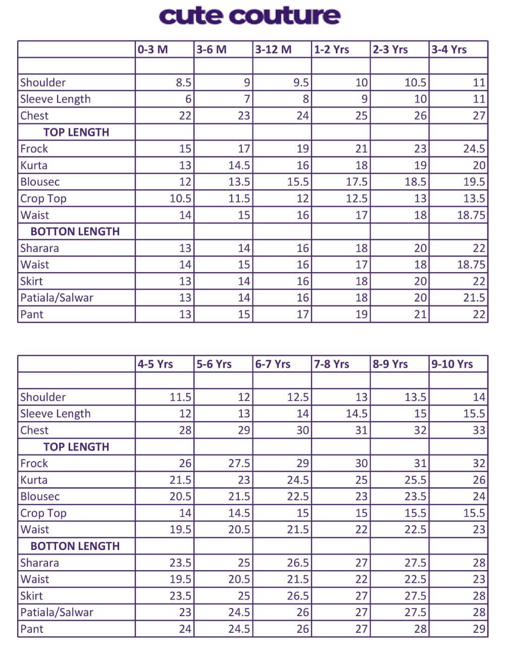 The chart details provided are body measurements. Measure your child, without adding any ease and pick the size closest to the measurement.