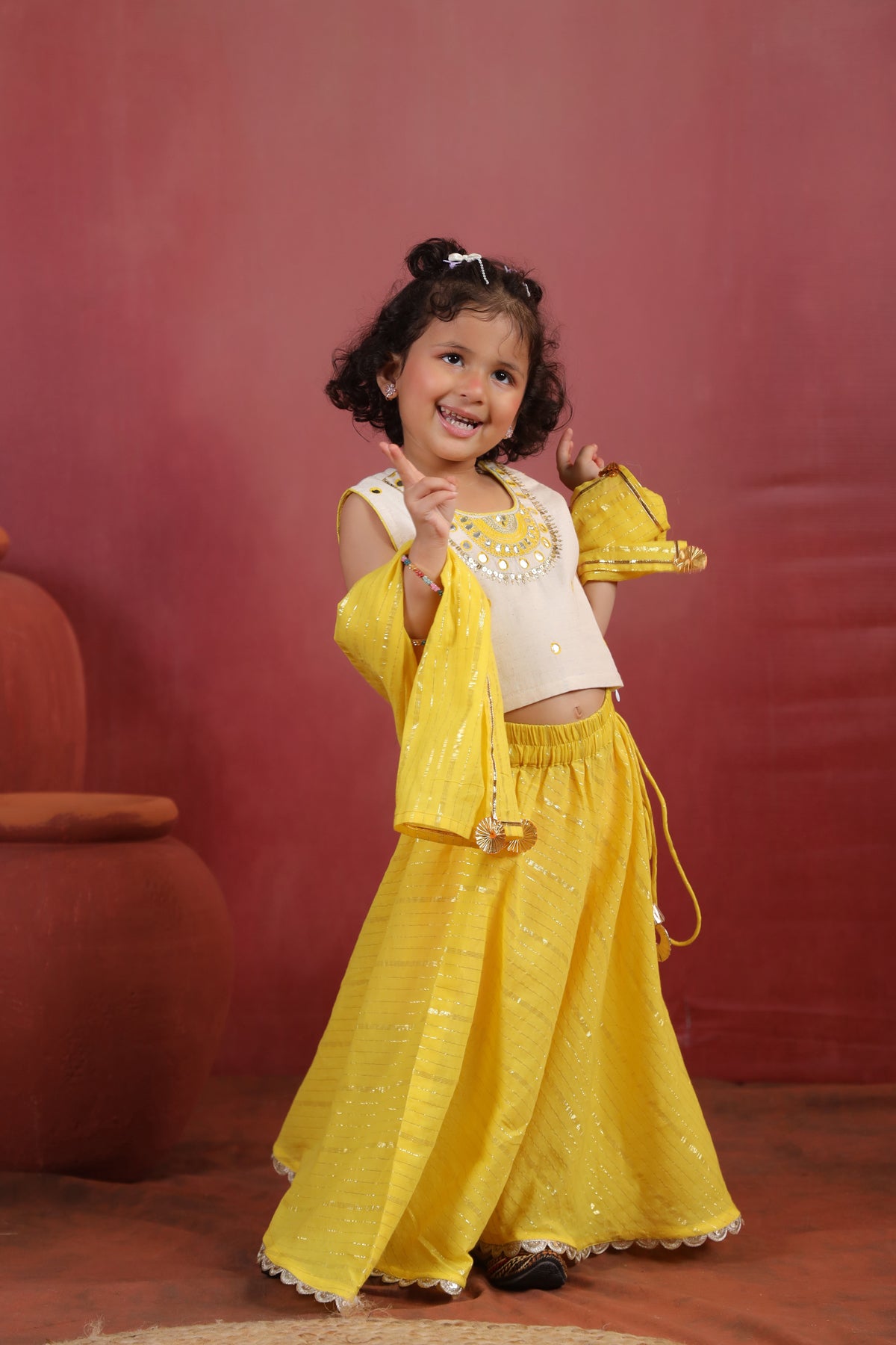 Skirt is with elasticated waist and trendy lacing and tassels for best fit and kurta has back buttons