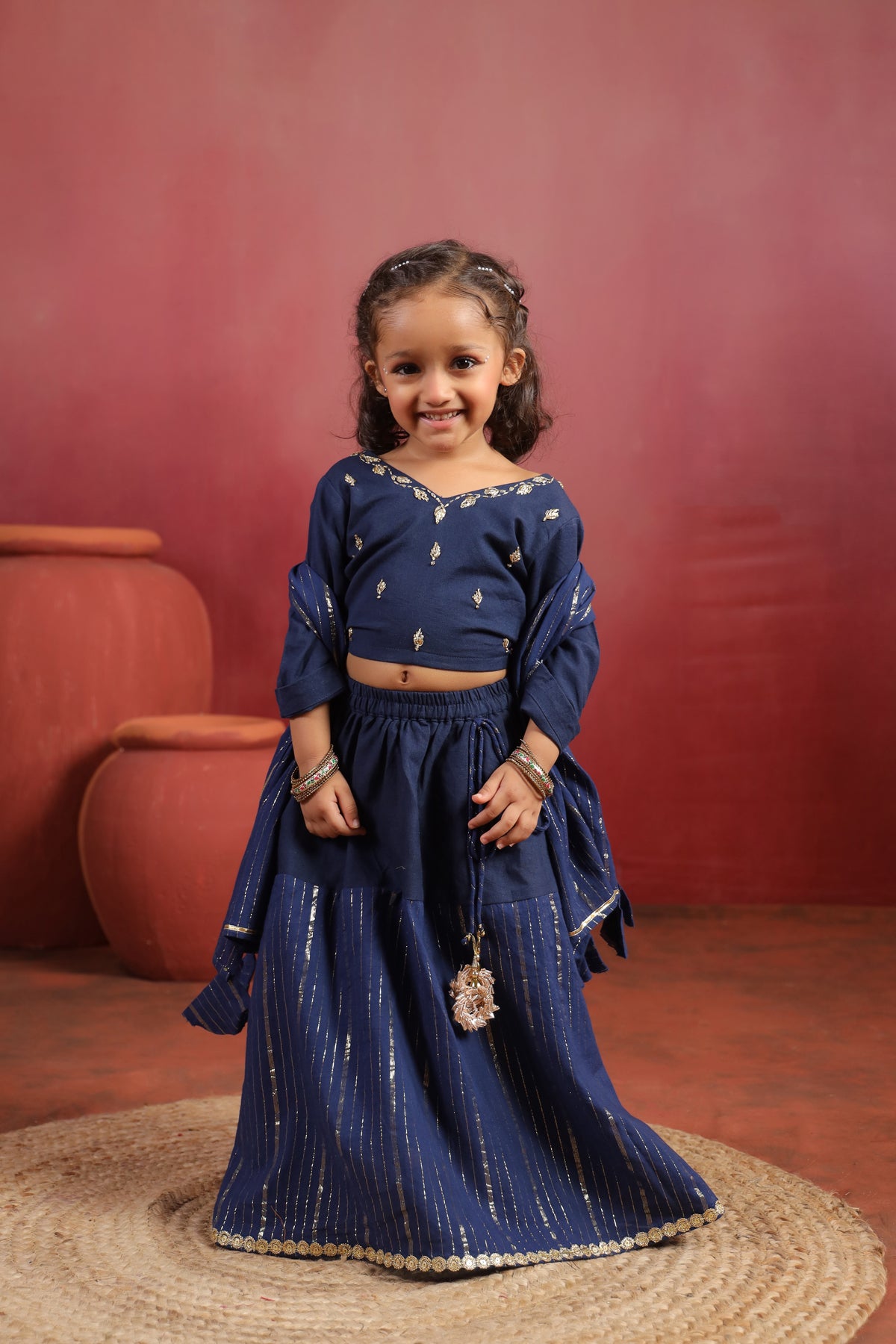 Girl Rani Embroidered Skirt Top Set -Navy Blue
