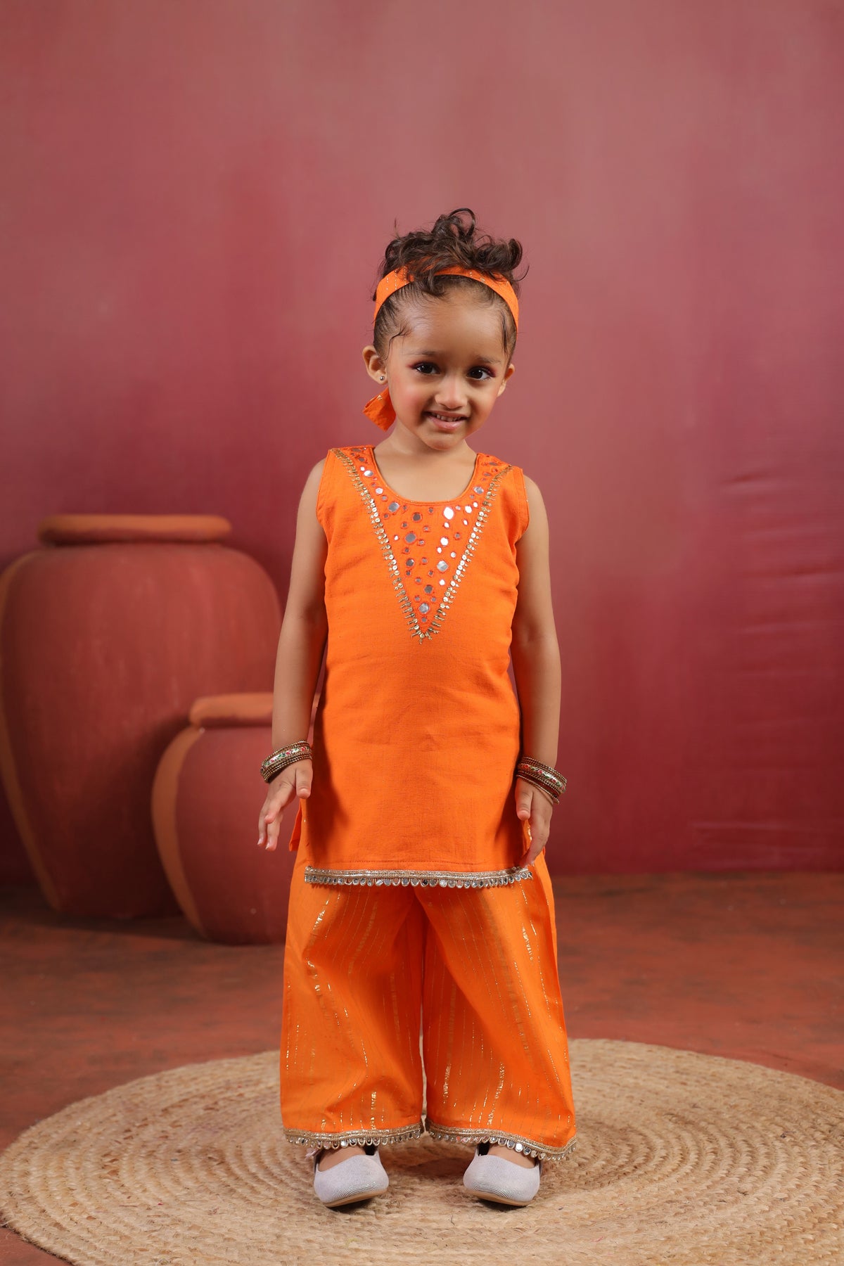 Girl Royal Mirror Kurta Palazzo Set - Orange